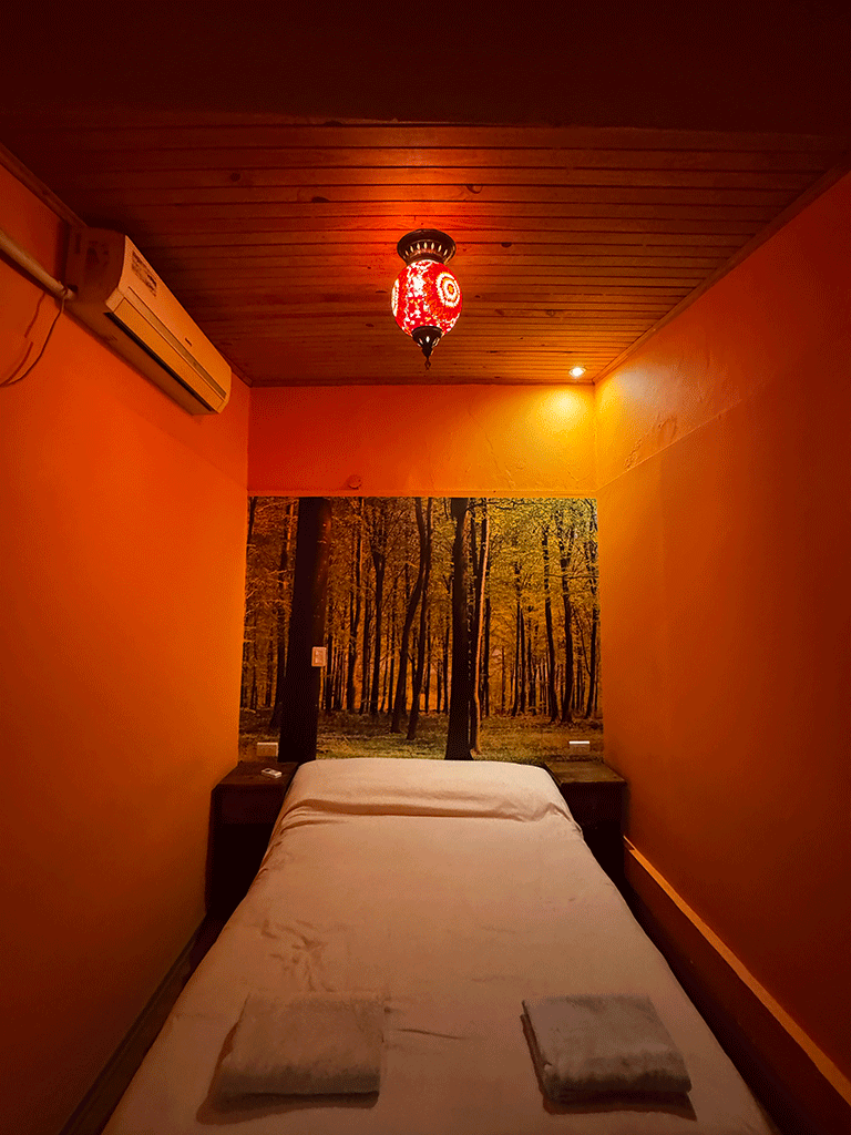En cuanto a las comodidades tiene de todo, las habitaciones están buenísimas y son de varios tipos; las camas tienen cargadores USB y bastante privacidad, todo está siempre limpio y la gente que atiende tiene la mejor onda.